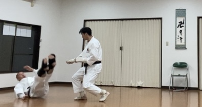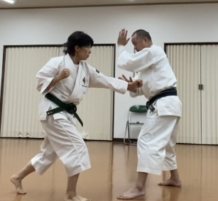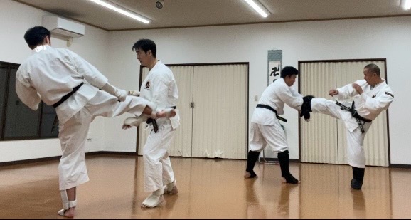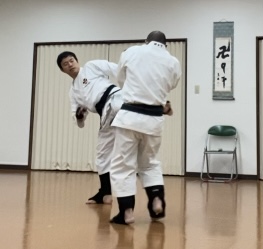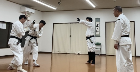20分ほどやった後は、蹴りに対する角度処理の練習。全員有段者だったこともあり、フルスイングで数十本蹴ったら攻守交代。先の乱捕りよりも疲れました😅