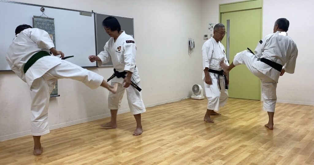 どちらも2パターンで、腰を入れる練習、蹴り足を伸ばす練習をそれぞれやりました。