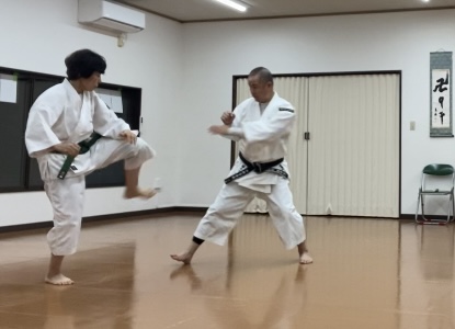 今日は、基本単独演武を左右ゆっくりとやった後、天地拳第一系の相対からのスタート。