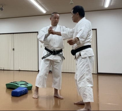 小手抜 → 逆小手、押抜 → 小手巻返、二段抜 → 押小手。いずれも掴まれた手で抜き技を使う際の、回転や梃子の力を崩しに転用することをテーマにやりました。