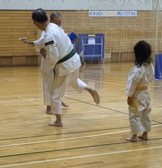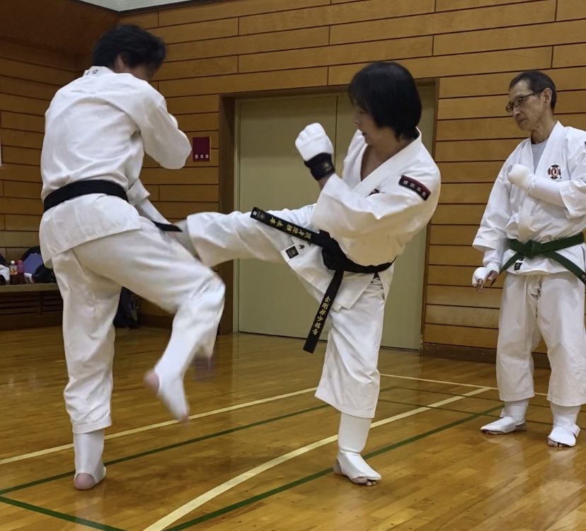 ラストは、上・中・下段を一度に防ぐ「廻蹴三防受波返」をやりました。3ヶ所同時防御は、けっこう難易度が高いですね😅