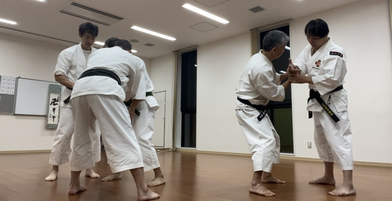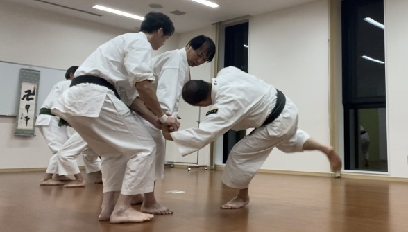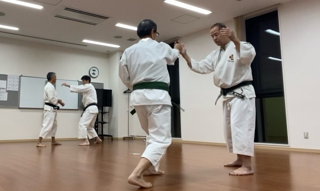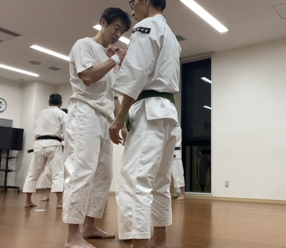 先ほどまで修練した「重い手刀」を使って、抜き技・崩しに応用していきます。