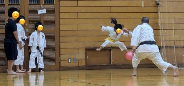 休憩の後、少年部はボールを避ける動きで目をつぶらない練習です😊