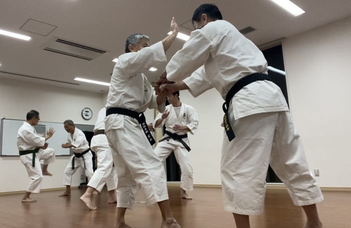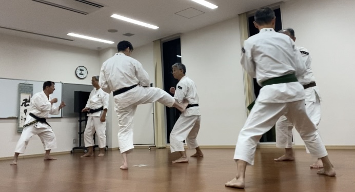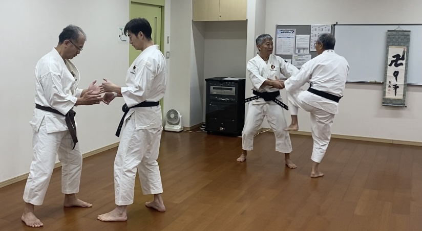 今日は、基本突きの後「突天一」を題材にして色々と練習しました。