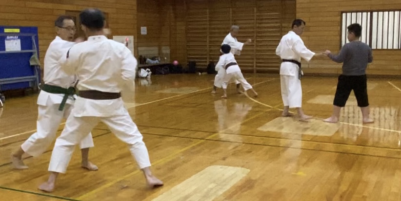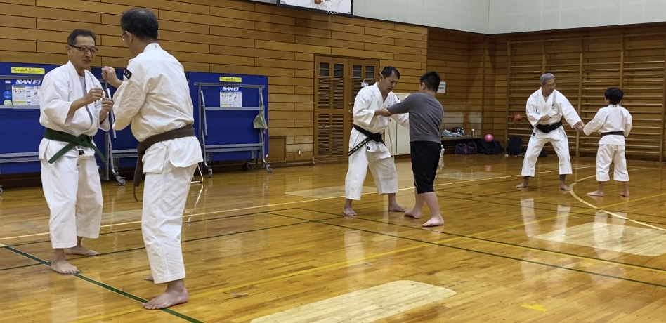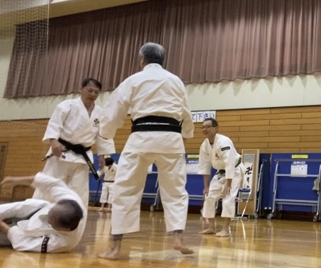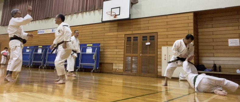 仕上げとして、今の3技を3人の相手に次々と掛ける練習「掛かり稽古」をやりました。頭も身体もフル回転です‼️(有段者は左右)