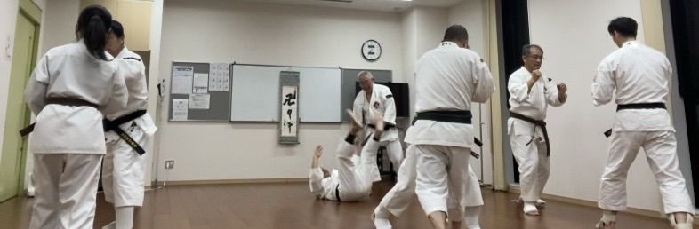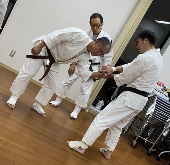 乱捕りを30分ほどやった後、全員で実技科目へ移行。(乱捕りの終わり頃に、足の爪が剥がれるアクシデントがありました🙏🙏)