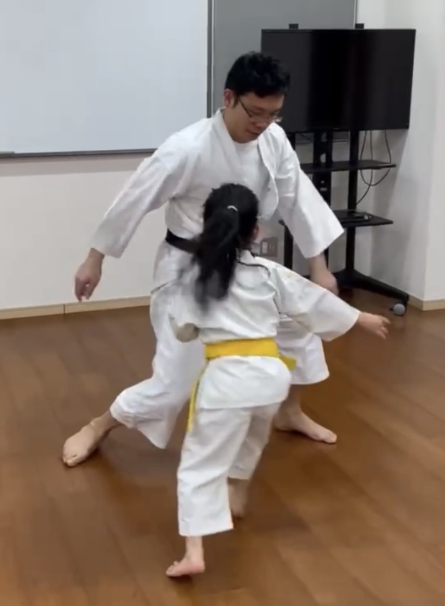 こちらは子供の全力攻撃を大人が体捌き・足捌きだけでよける練習の模様。鬼ごっこのようで楽しそう‼️