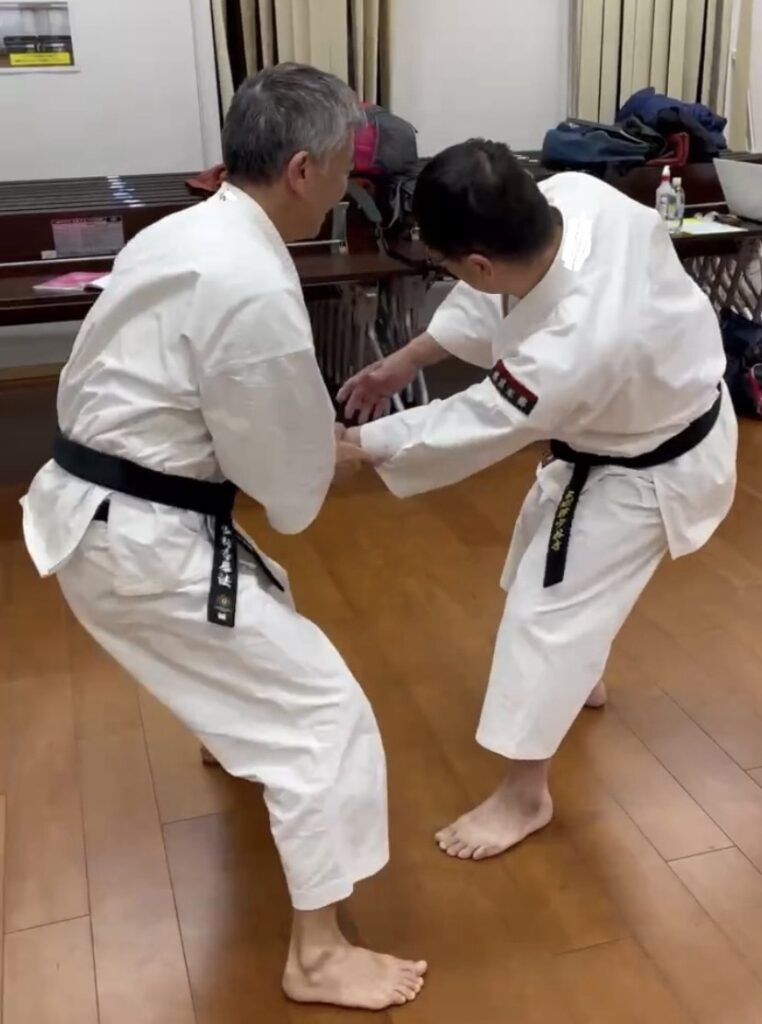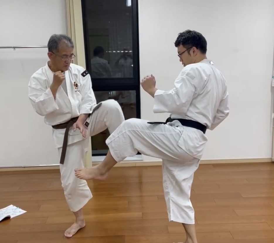 「半転身蹴」の模様。相手に近寄り過ぎず、蹴りとしての良い間合ですね‼️