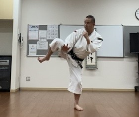しっかりと地面からの反発を受け止めて歩法に変換できるように足を使う練習をしました。