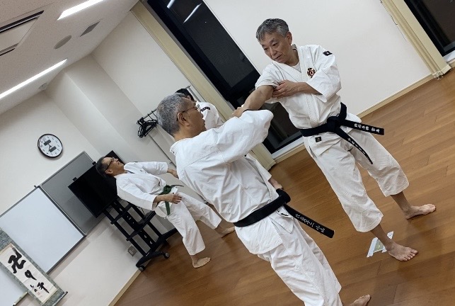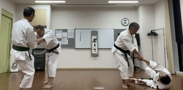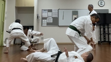 続いては「押小手」と「小手巻返」。こちらも捌手と掛手の役割分担を意識してやっていきます。今日は特に掛手側で押し込むやり方を練習しました。