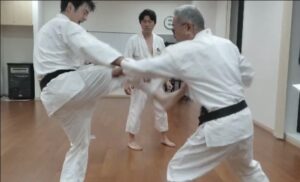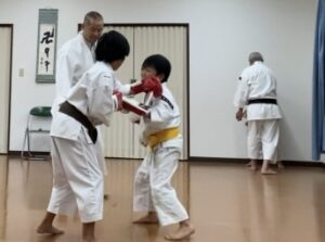 今日は、蹴り練習からのスタートです。足刀蹴りのフォームで相手を押して、軸足のブレなどを確認していきます。 まっすぐの直蹴りでも同様です。 どちらも2パターンで、腰を入れる練習、蹴り足を伸ばす練習をそれぞれやりました。 更 […]