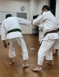 今日の稽古は、中段の蹴り合いから。 と言ってもドスドスお腹を蹴るのではなく、蹴りの形で押し込み、軸足や股関節の感覚を鍛える練習です。 足刀蹴でも同様に👍 続いては、上膊捕。腕を押し込まれたときの守り方が、 […]